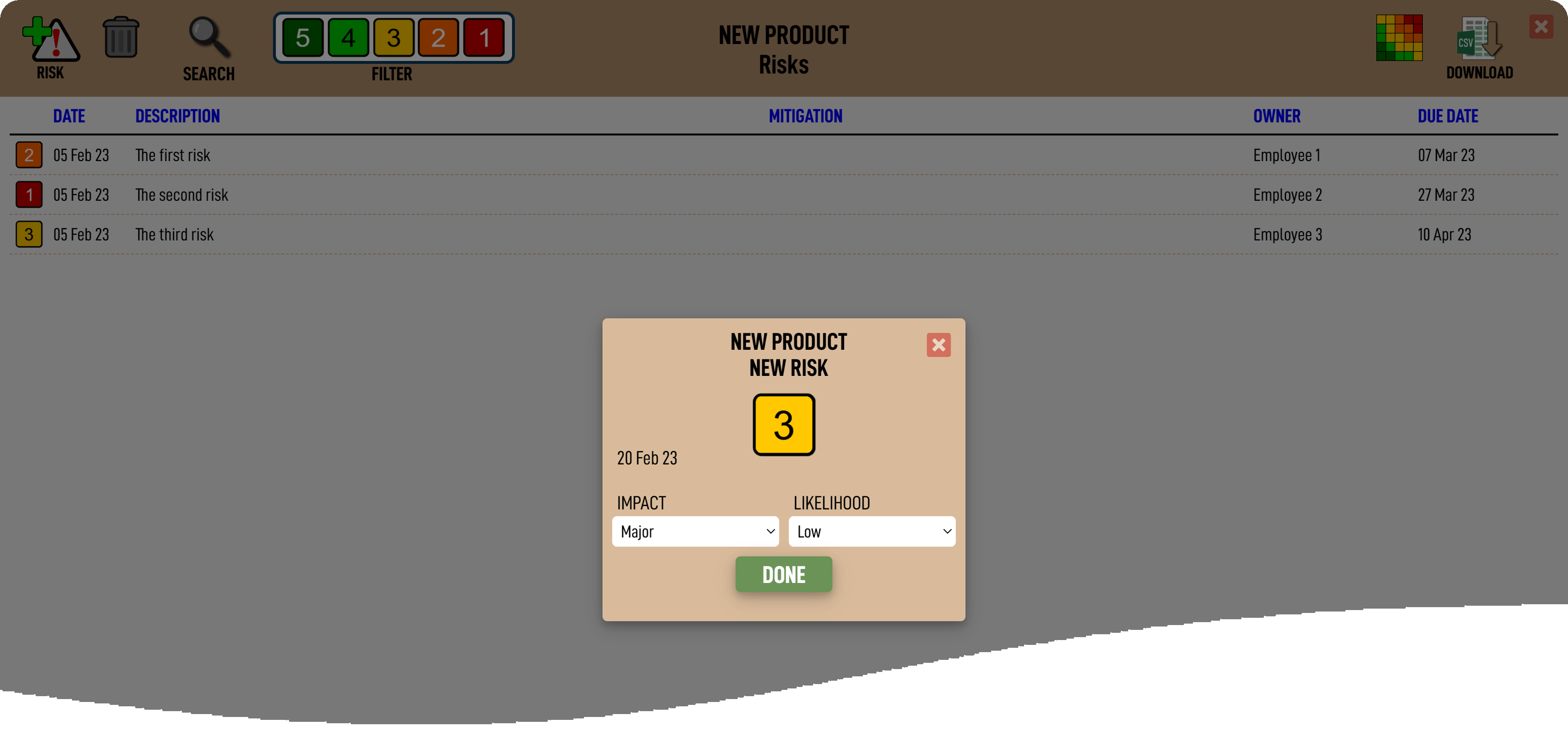Every product in Vizula contains a Product Risks List (PRL) which can be used by the Product Manager or Project Manager to manage a list of risks which arise during the course of developing the product. The PRL can be utilised as much or as little as is determined useful by the Project Management team.